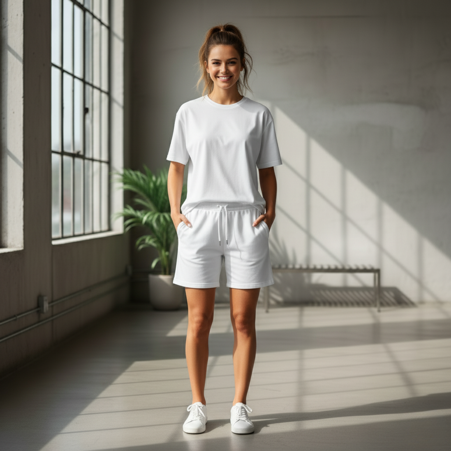 Der Stil Das minimalistische Design macht diese Shorts zu einem vielseitigen Essential. Kombiniere sie mühelos mit unseren Oversized Tees für den ultimativen Essenz-Look.